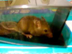 so i went on a search for a trap… as humane as i could find.  i found the mouse cube.  you put some bait inside and the little vermin goes in and gets stuck… then you can release him without killing him or touching any part of him.  so of course, i spend the $1.99 for it and jason set it up last night.