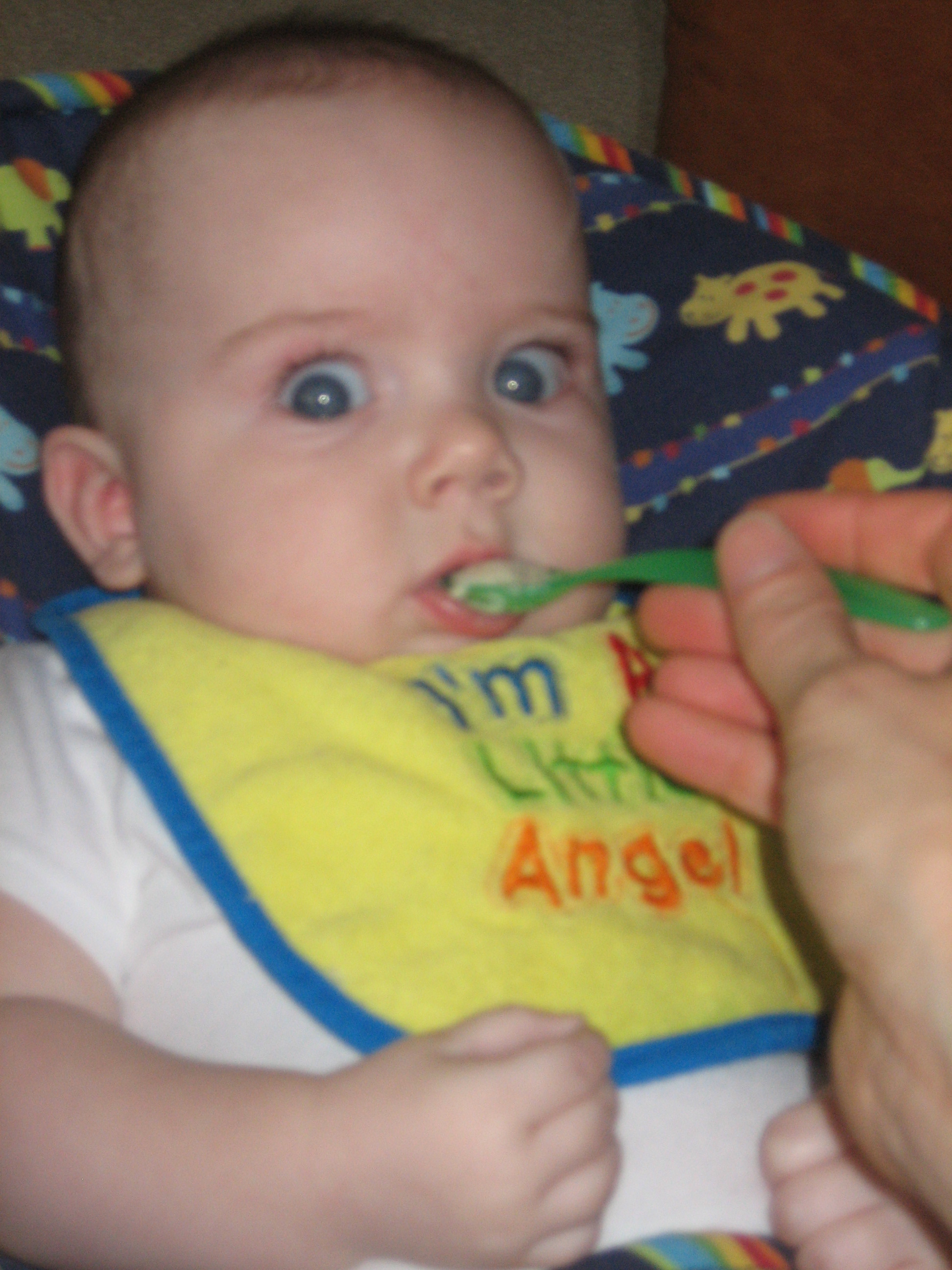 jack is now a solid food eater!   he doesn’t really know if he likes it.  i know that life was a little easier when just a bottle of formula was enough to get him through the next four hours of the day.  now i have to really prepare to be 10 minutes late everywhere i go!  soon i will be donning the apron and making some baby food.