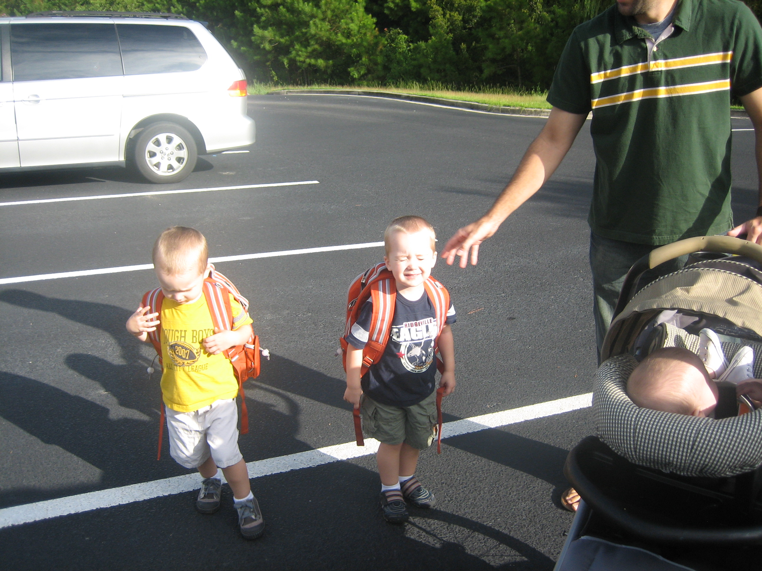 they were so excited.  we had visited the school and their new teacher twice already, so they knew the drill.  and they already adore mrs. kerri.  she had been judah’s preschool teacher, so we already knew that she was great!  i felt comfortable here.  it is still quite odd to think that up until this point, i have predominantly been their teacher.  i pride myself in the fact that they know many of their abc’s and they can count to 12…sometimes they can count to 5 in spanish and they know all their colors and shapes.  I am the one who taught them this. now they are in the hands of two people (mrs. marie is mrs. kerri’s teacher’s aid) that i really don’t know well and they are learning new things.  but it is all in all exciting.  i have already had great reports on how well they behave and how they are interacting with the other children.  ben even shared his little orange dinosaur today…that is huge!  here are some more first day of school pics: