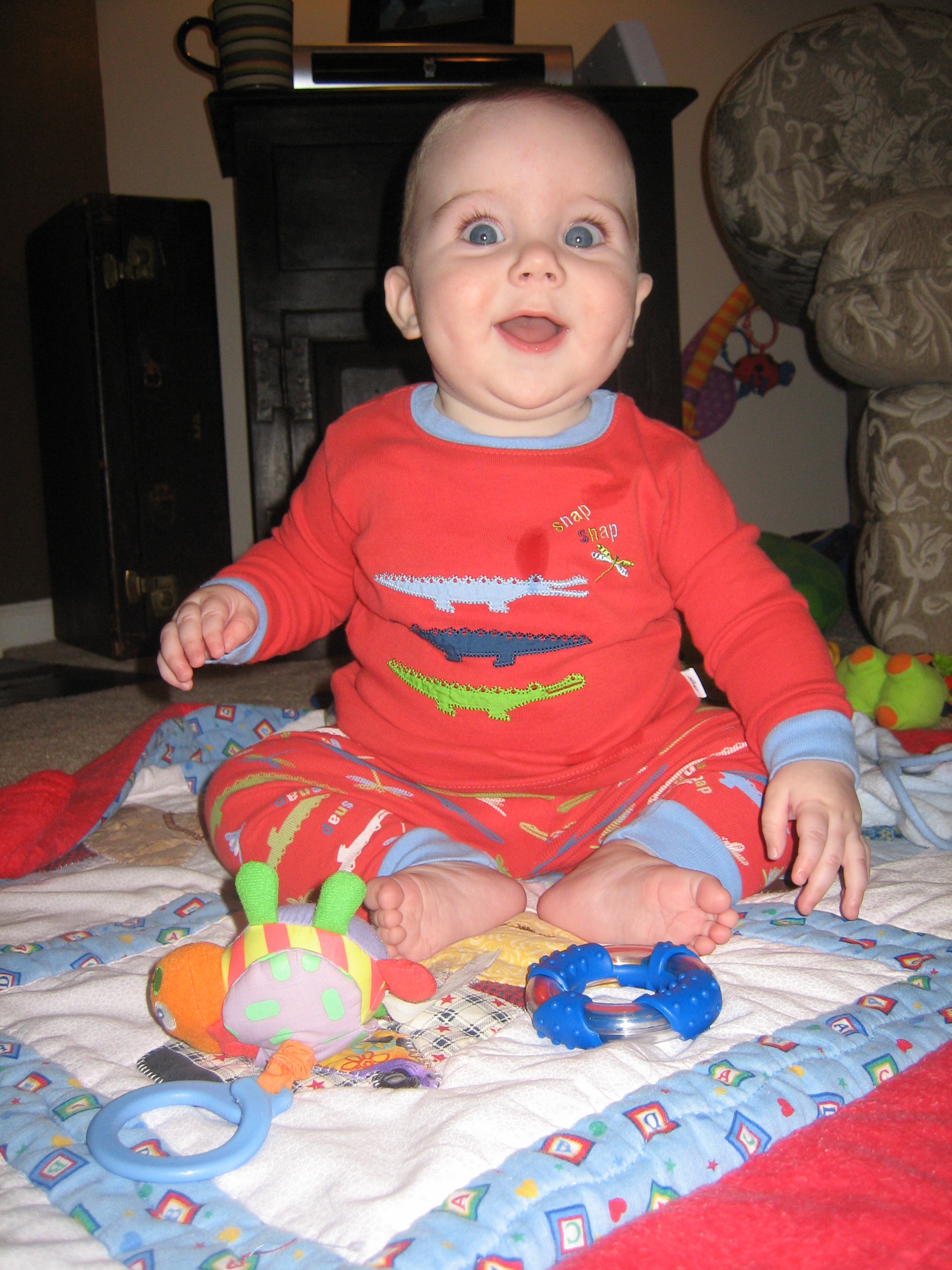 as if the date wasn’t hard enough i thought about all the things that have happened in these 3 months that i know she would enjoy hearing…1st day of preschool, ben and sam mastering the english language, jack cutting 2 teeth, potty training stories (that is another blog).  today jack sat up by himself.  he can now sit and reach for toys, balancing and reaching everywhere.  he also had a doctors appointment.  his 24 week visit.  he is 6 months today.